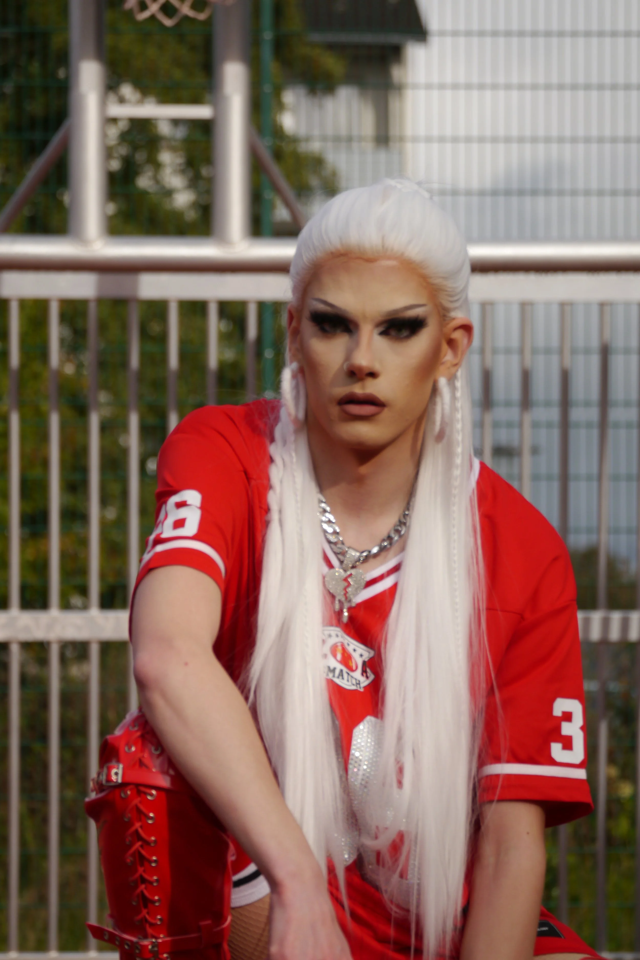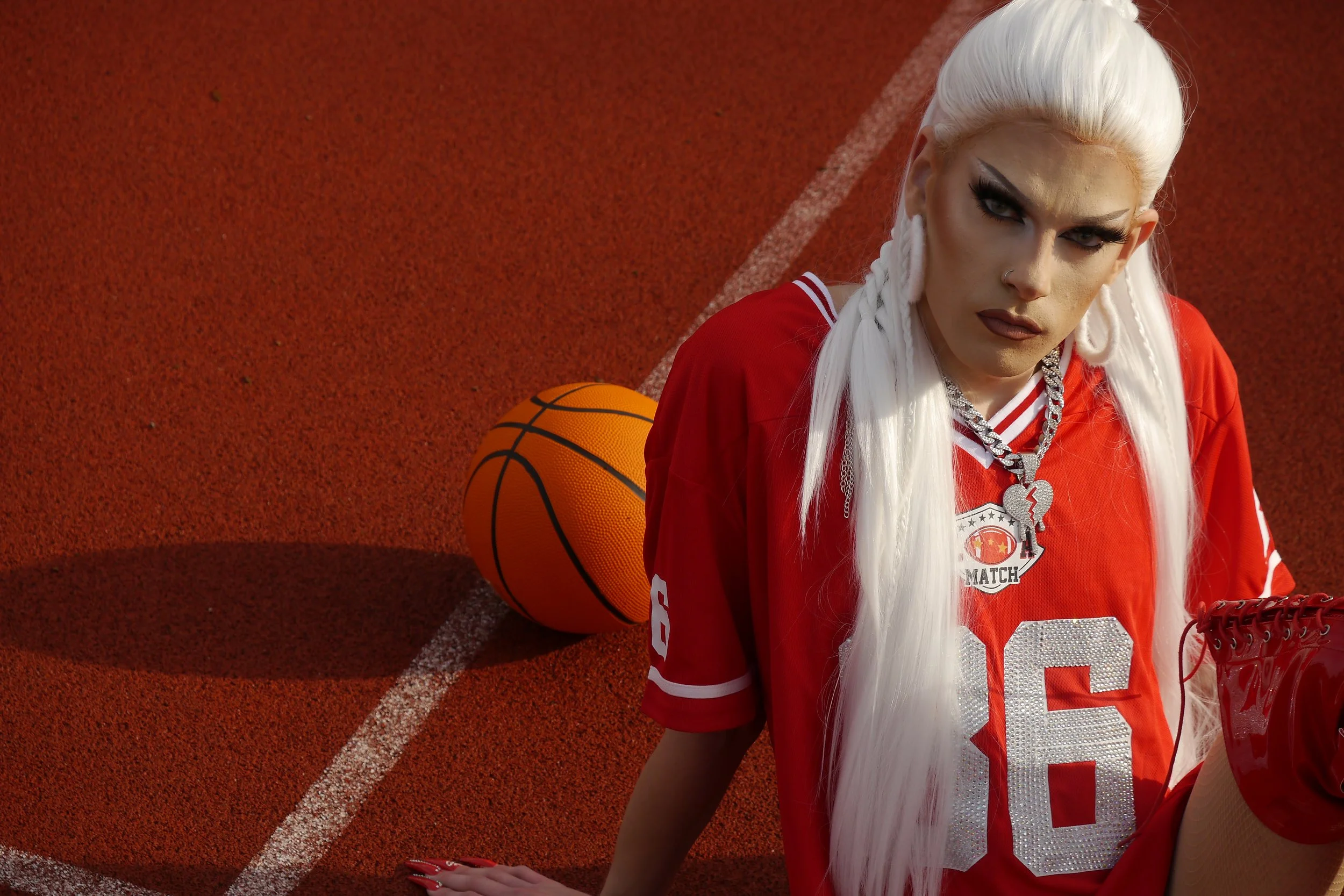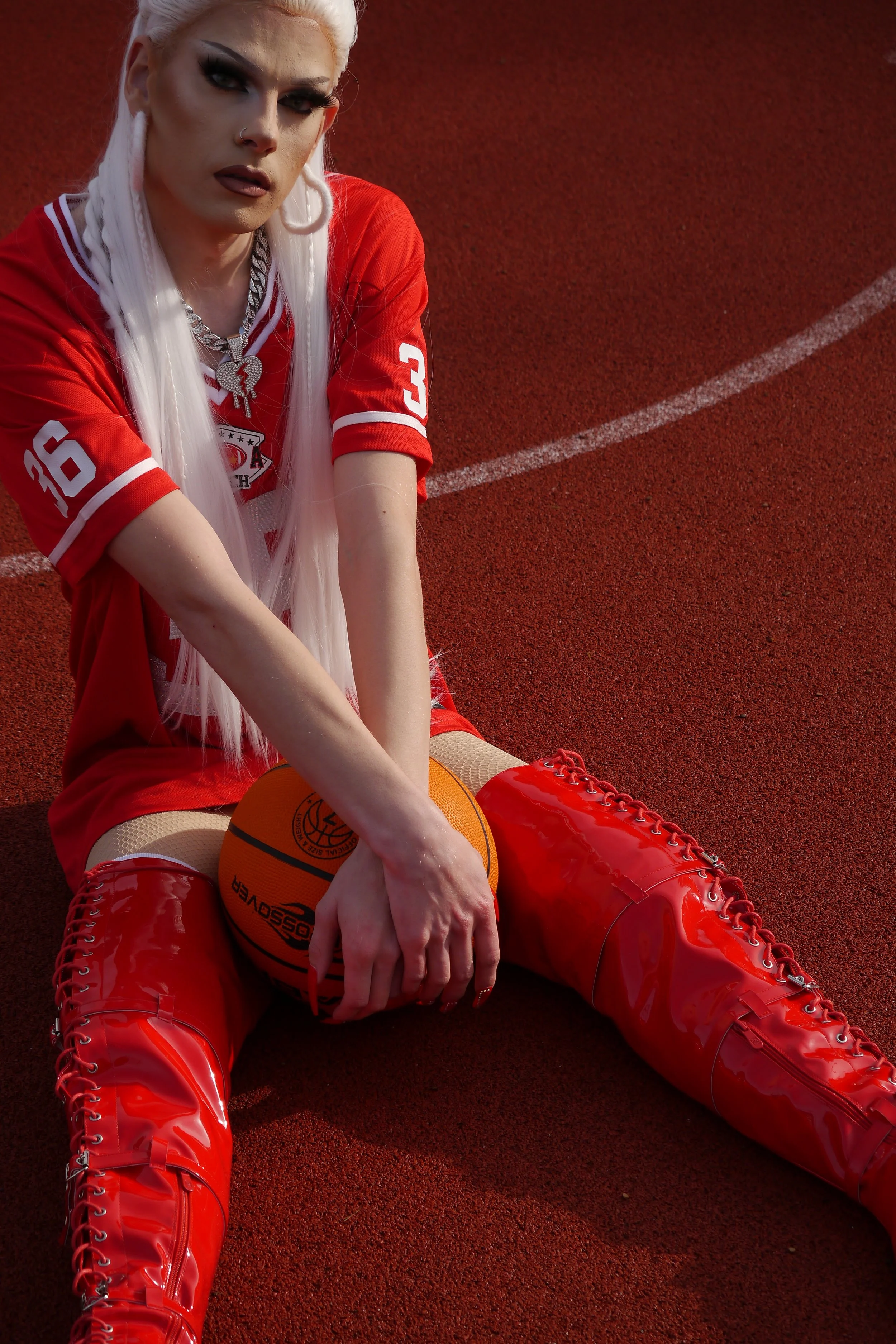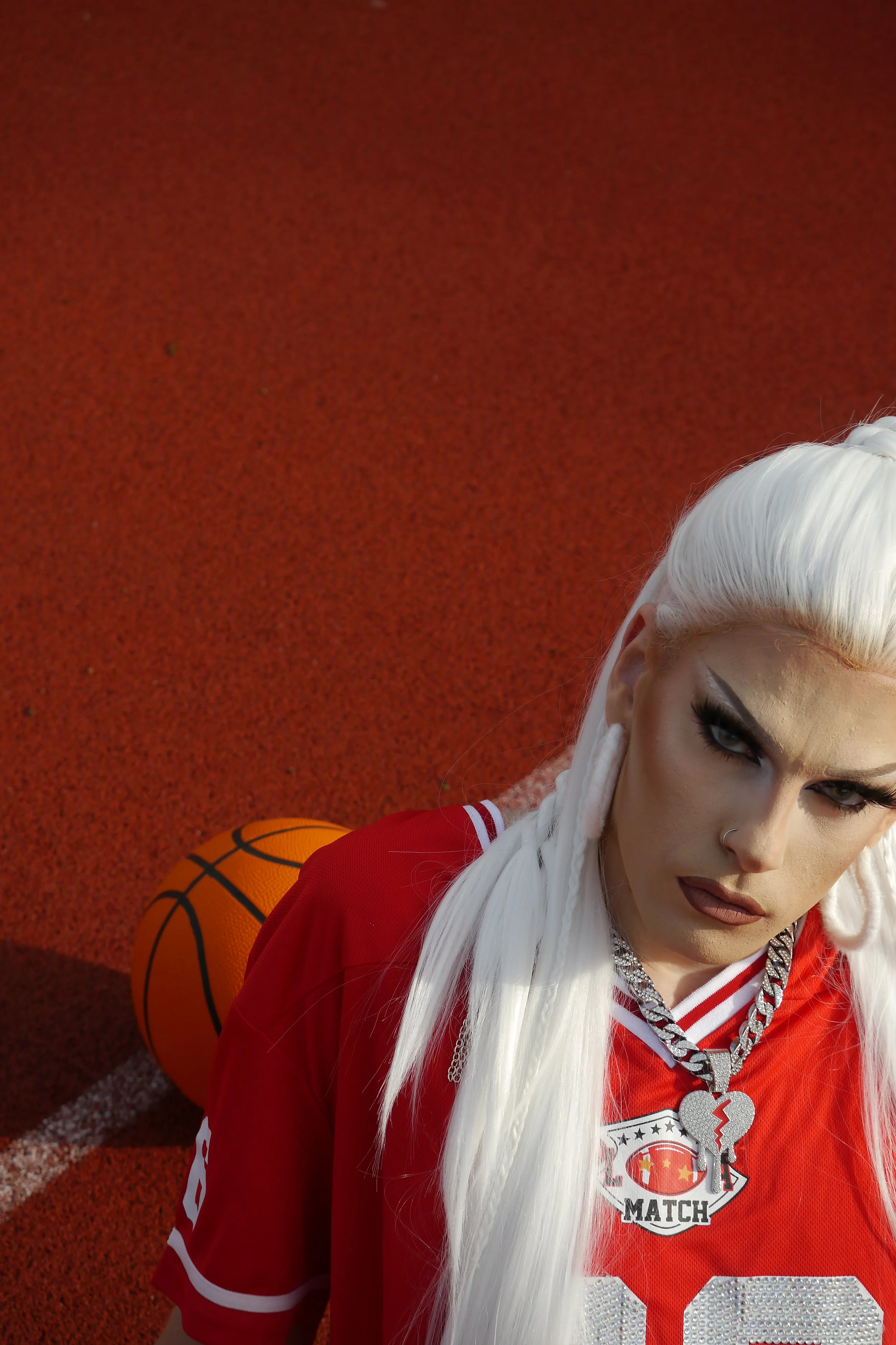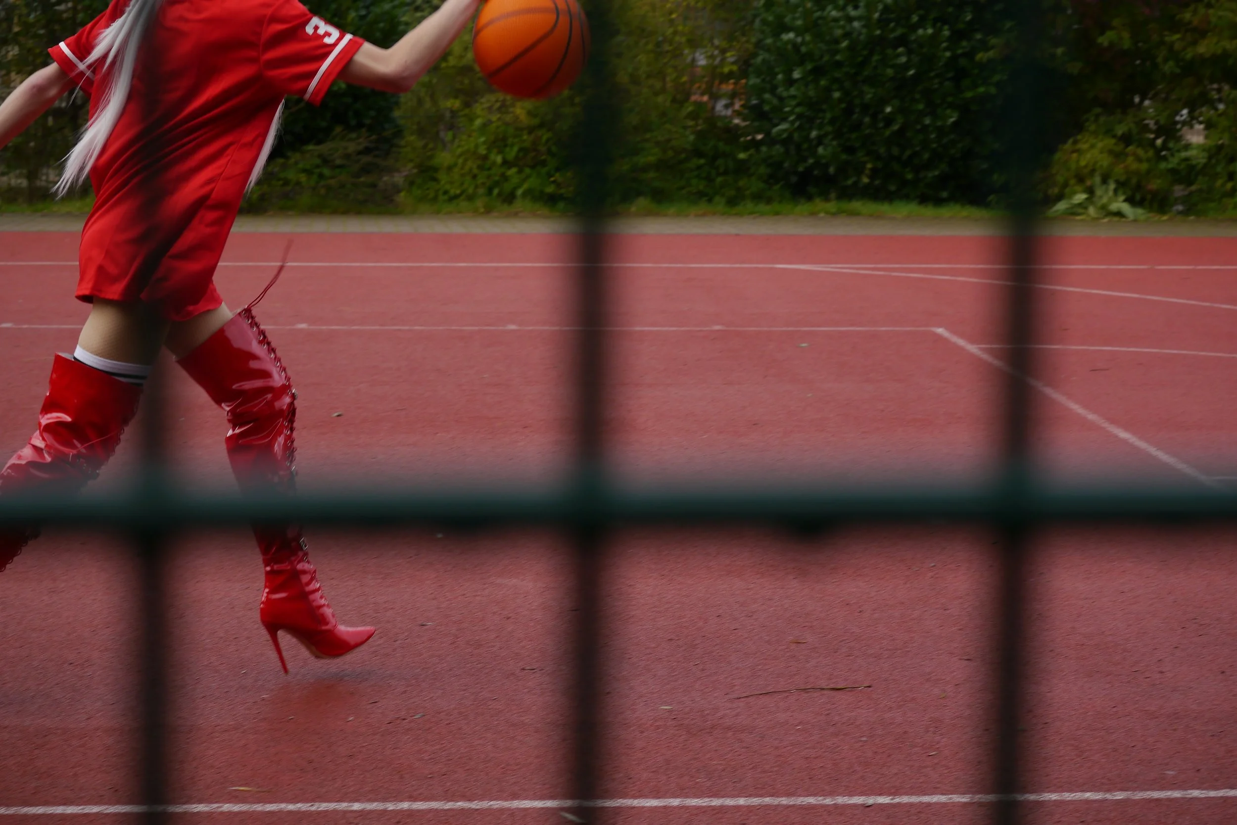 Die Inspiration für dieses Shooting kam von Sportwerbungen aus den 90er Jahren, die das ikonische Bild des Hinterhof-Basketballfeldes in der Stadt zeigen. Wir wollten, dass die satten Rottöne richtig zur Geltung kommen, und haben uns für einen monochromen Stil entschieden. Aufgenommen auf 35-mm-Film und digital.